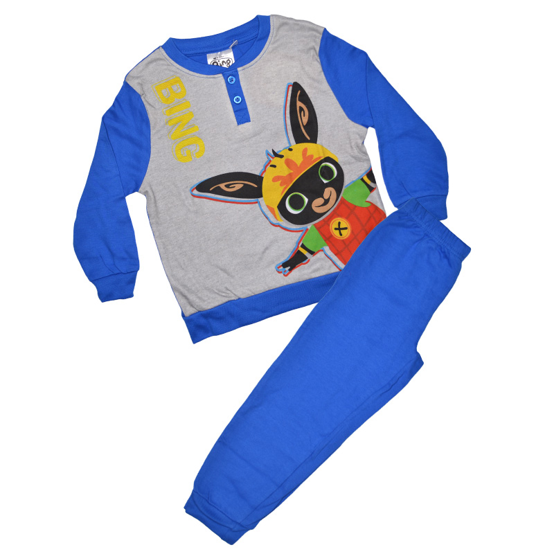 skladom < 5 ksChlapčenské dlhé pyžamo BING sivo modré Kľúčové informácie: - Materiál: 100% bavlna – mäkká, priedušná a pohodlná na nosenie - Veľkosti: dostupné vo viacerých veľkostiach - Farba: modrá - Údržba: Možno prať v práčke na 40 °C, odporúčame prať...