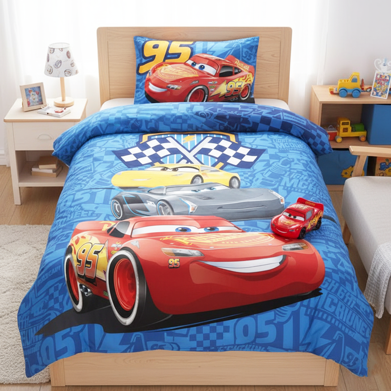 Barion Pixel Detské obliečky | Chlapčenské posteľné obliečky CARS modré 100x135cm/40x60cm | Bociankovo.sk | Rozprávková móda na každý deň